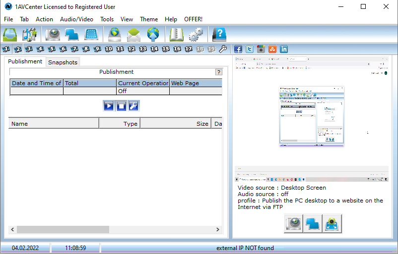 AVCenter is a group of applications gathered in one intelligently designed user interface: screen recording software, audio capture software, live video streaming software, remote video surveillance software, windows file server, and more.