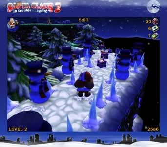 With its lively Christmas tunes and holiday sound effects, Santa Claus in Trouble is certain to get anyone into the holiday spirit. The screen shots don't do this game justice. The graphics are superb! There is not a whole lot in the options department but the config.txt file makes up for this. The in game options consist of music and sound voulume controls, controller type and language. The only thing that this game is lacking is a save game feature. There are three annoying exit screens with ads for their other games, but if you exit by pressing Alt+F4 these will not appear.